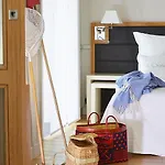 The comfortable hotel offers rooms with a dressing area featuring ironing facilities, along with a flat-screen TV with satellite channels. Bedrooms come with extra-long beds. Guests can also enjoy sea views.